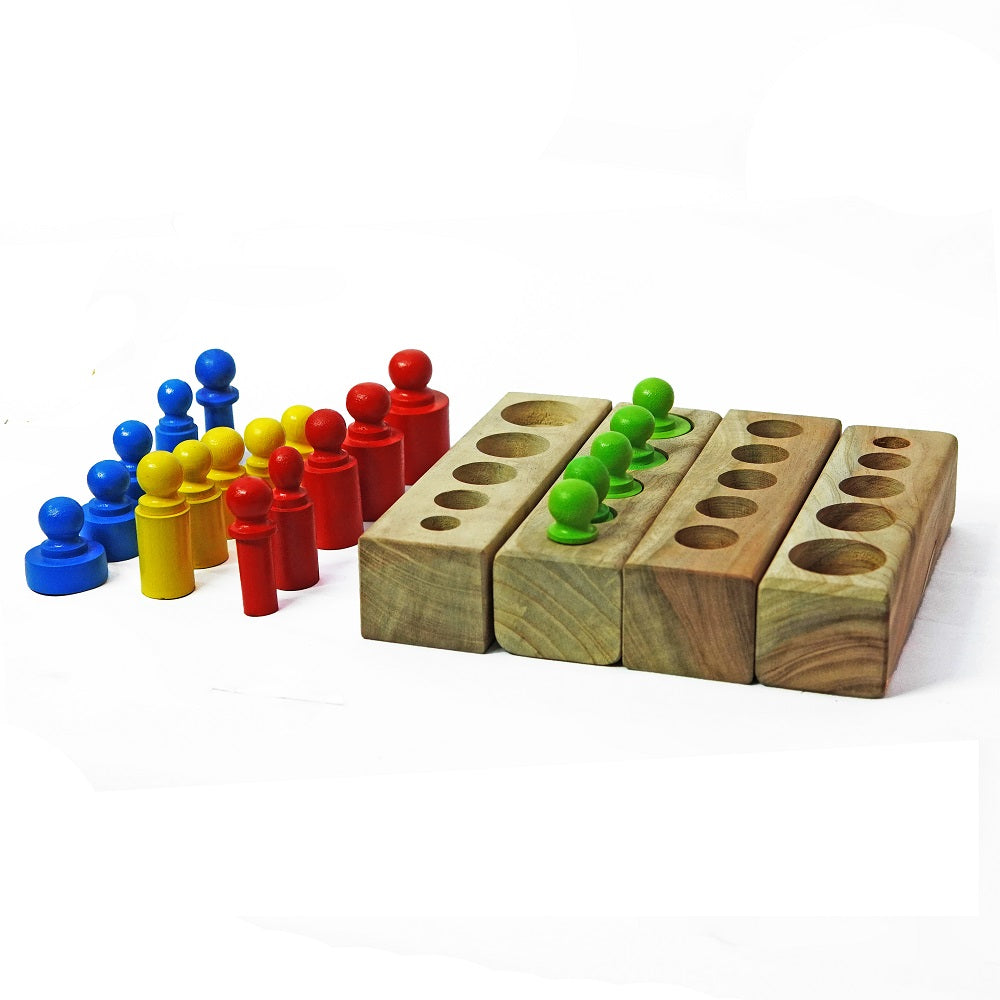 Natural Toys | Colourful 4 Block wooden knobbed cylinder- Montessori toy