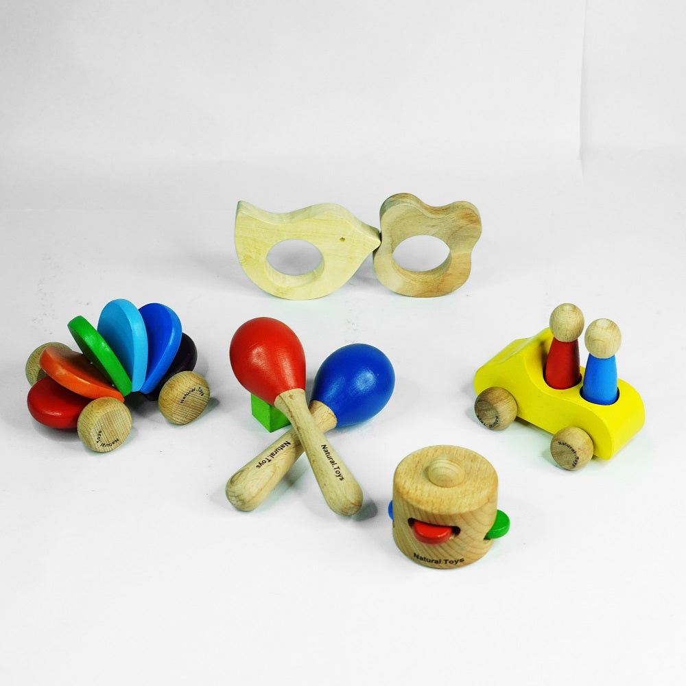 Buy Wooden Toys Combo Gift Kit for 6 Month+ | 1 Wooden Push Pull Toy Car, 1 Wooden Peek-A-Boo, 2 Wooden Maracas Toy, 1 Wooden Amazing Car (Pack of Seven Toys) | Natural Toys